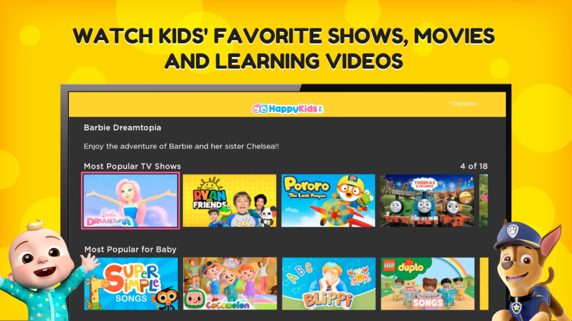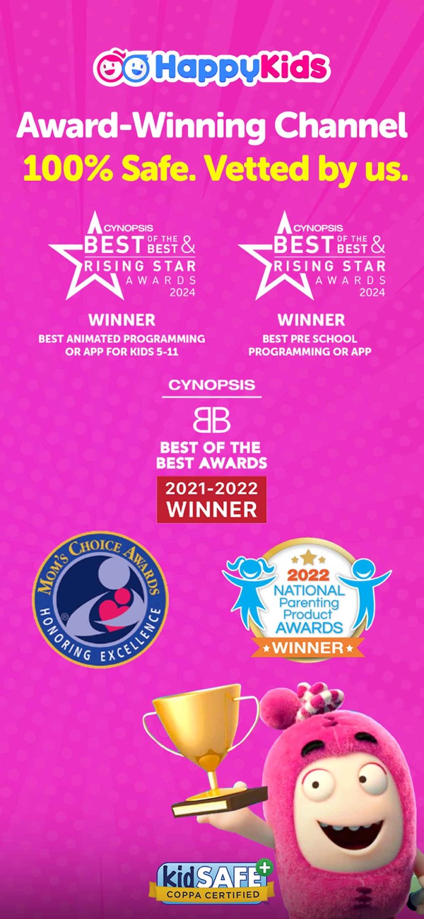 - لا تفوت فرصة مشاهدة محتوى HappyKids الأصلي، الذي يتميز بالجودة العالية والمحتوى المبتكر.